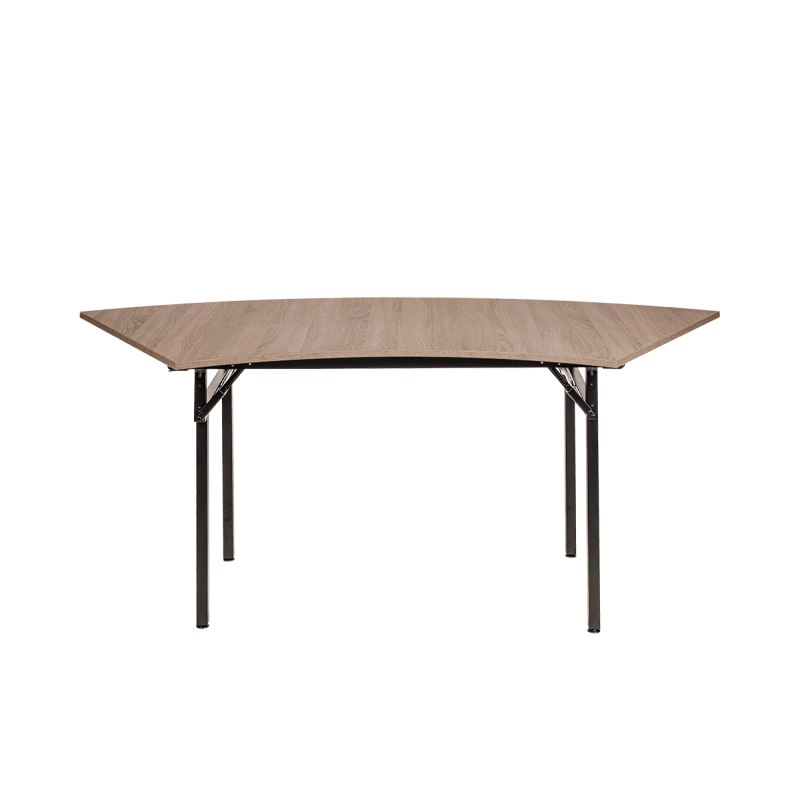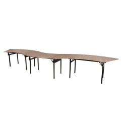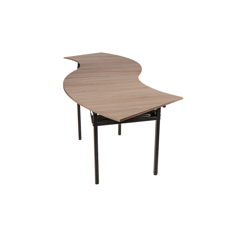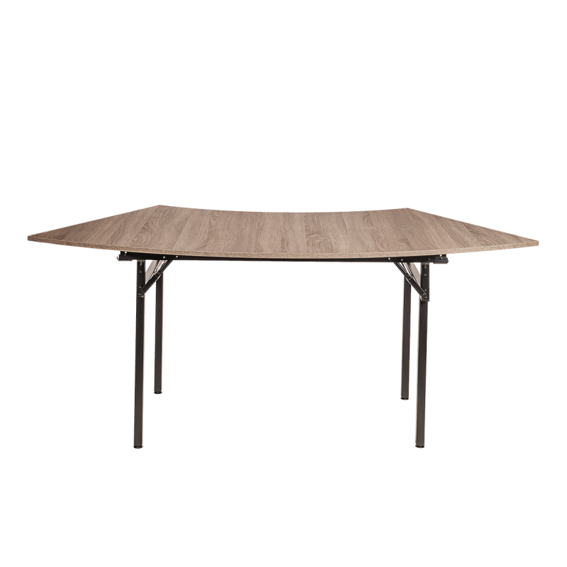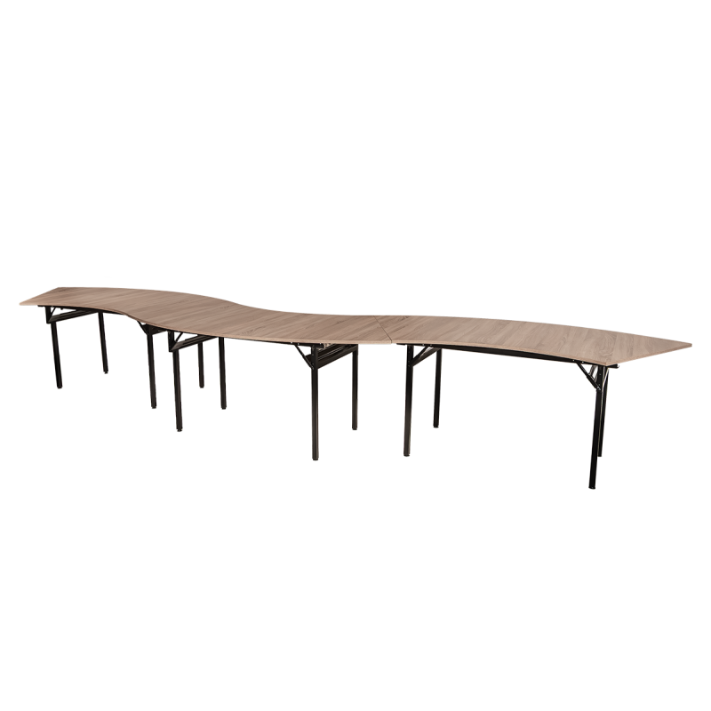 Skládací banketní stůl Fala byl navržen pro místa, kde se cení nejen funkčnost, ale i vizuální efekt. Jeho jedinečná vlnitá linie umožňuje spojit několik stolů do jednotné dekorativní kompozice připomínající pohyb vln, čímž dodává každému interiéru moderní a dynamický charakter. Skvěle se hodí na bankety, konference, firemní večírky či elegantní společenské události.