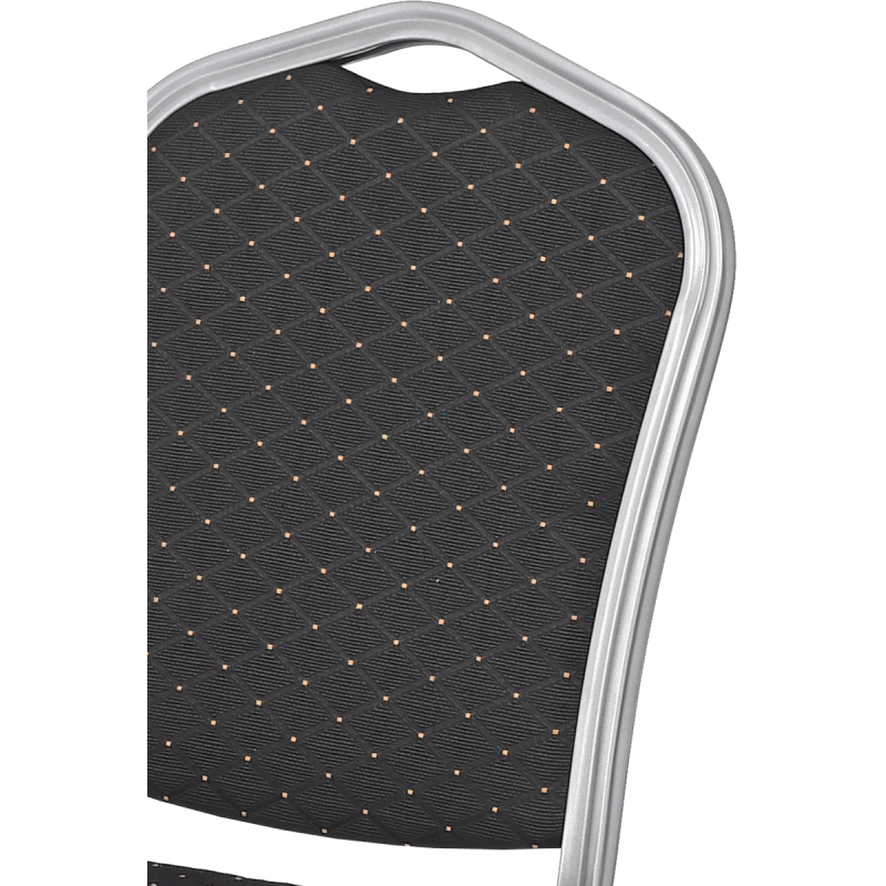 Banketová židle SOUL z ekonomické řady je pohodlná židle s ocelovým rámem. Široký profil 25 x 25 mm s dodatečným zapichováním dodává eleganci. Rám je chráněn proti poškození práškovým lakováním ve stříbrné kovové barvě. Čalounění židle SOUL je černé a doplňují ho žluté puntíky, díky čemuž je židle ideální pro rauty a gastro oslavy.  SOUL banketové židle zaručují stabilní a silnou konstrukci díky použitým vysoce kvalitním komponentům. Židle SOUL splňují všechny normy kvality MEXTRA GROUP, což se mimo jiné odráží v odolnosti proti zatížení. Síla židle je zátěž až 200 kg.