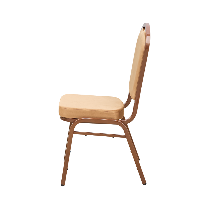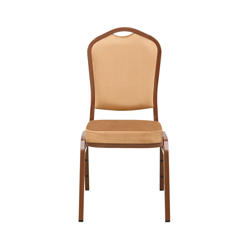 Banketová židle MUSIC RUMBA spojuje eleganci s funkčností a představuje ideální vybavení pro náročné prostory HoReCa. Hnědé sametové čalounění dodává interiéru teplý a vytříbený charakter, zatímco pevná ocelová konstrukce zajišťuje, že si židle výborně poradí s intenzivním používáním. Tento model z kolekce Music usnadňuje obsluhu sálu, poskytuje hostům pohodlí a udržuje jednotný vzhled aranžace. Od klasických banketů až po firemní ceremonie.