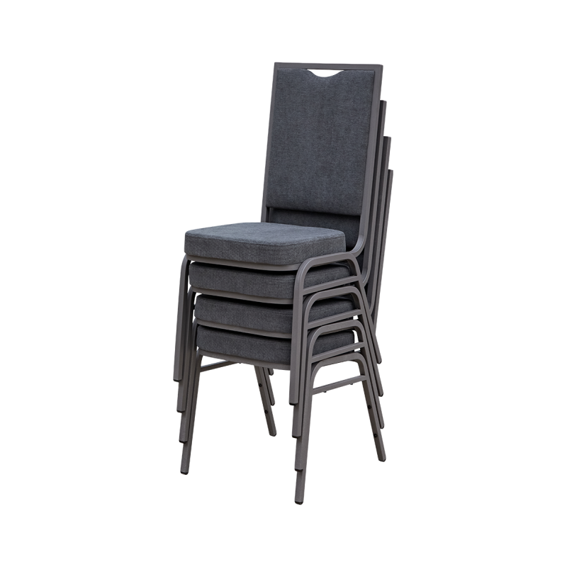Tmavá šedá tapiserie dodává modelu AM440 minimalistický, moderní vzhled. Díky tomu se skvěle hodí do současných banketových sálů, konferenčních místností i jako židle do hotelových interiérů. Její estetika nenarušuje charakter prostoru, ale organizuje ho a vytváří elegantní pozadí pro různé typy událostí – od recepcí po oficiální gala večery.