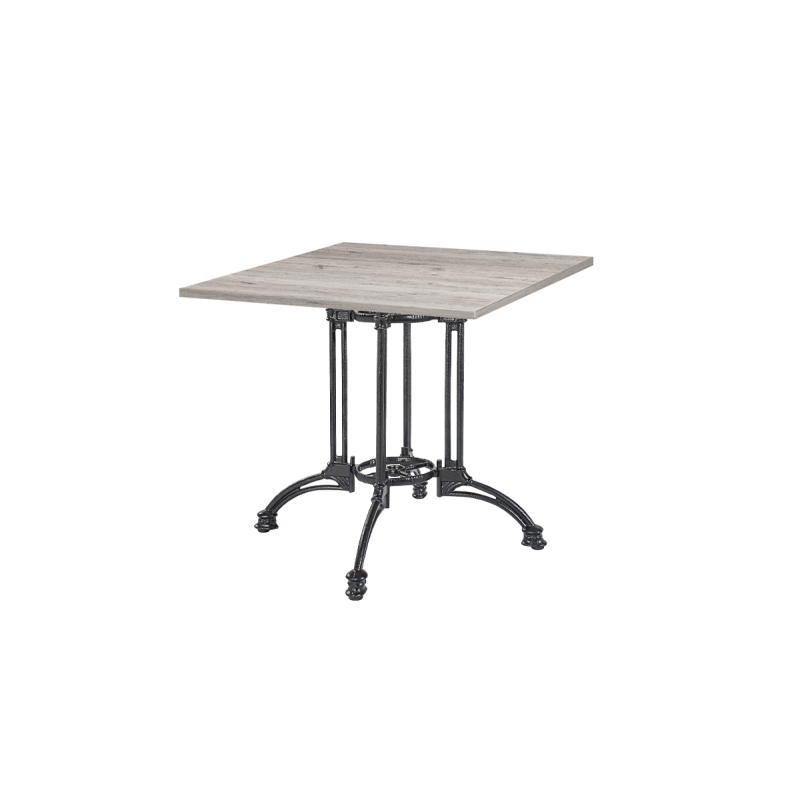 Kavárenský stůl Rustical Quattro je kombinací odolnosti a funkčnosti, která se skvěle hodí do restaurací a kaváren, které si cení pevného a spolehlivého nábytku. Litinová podnož zaručuje maximální stabilitu, zatímco její dekorativní tvar dodává interiéru charakter a jedinečný styl.