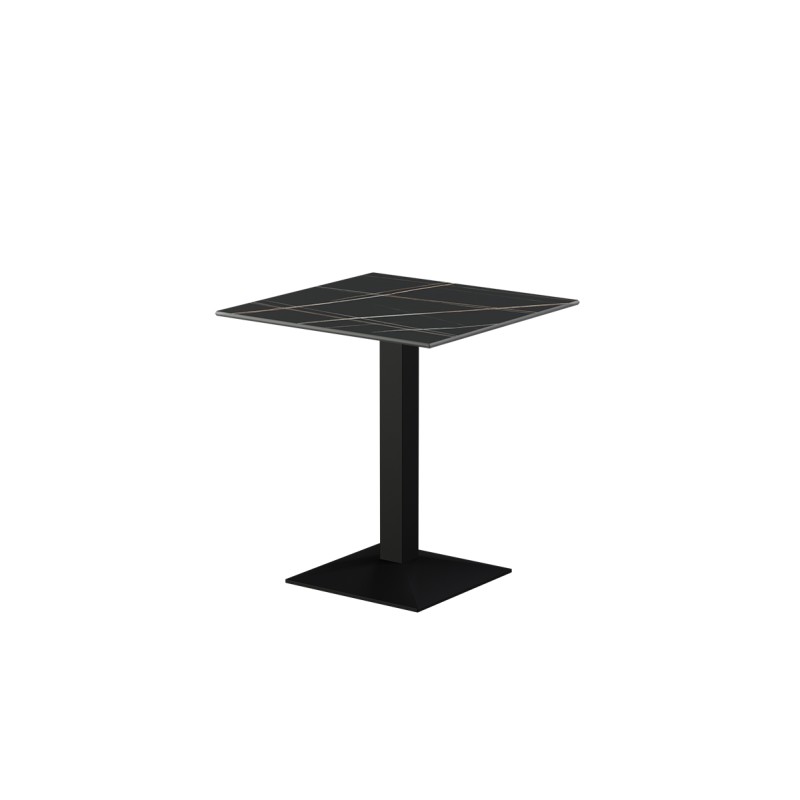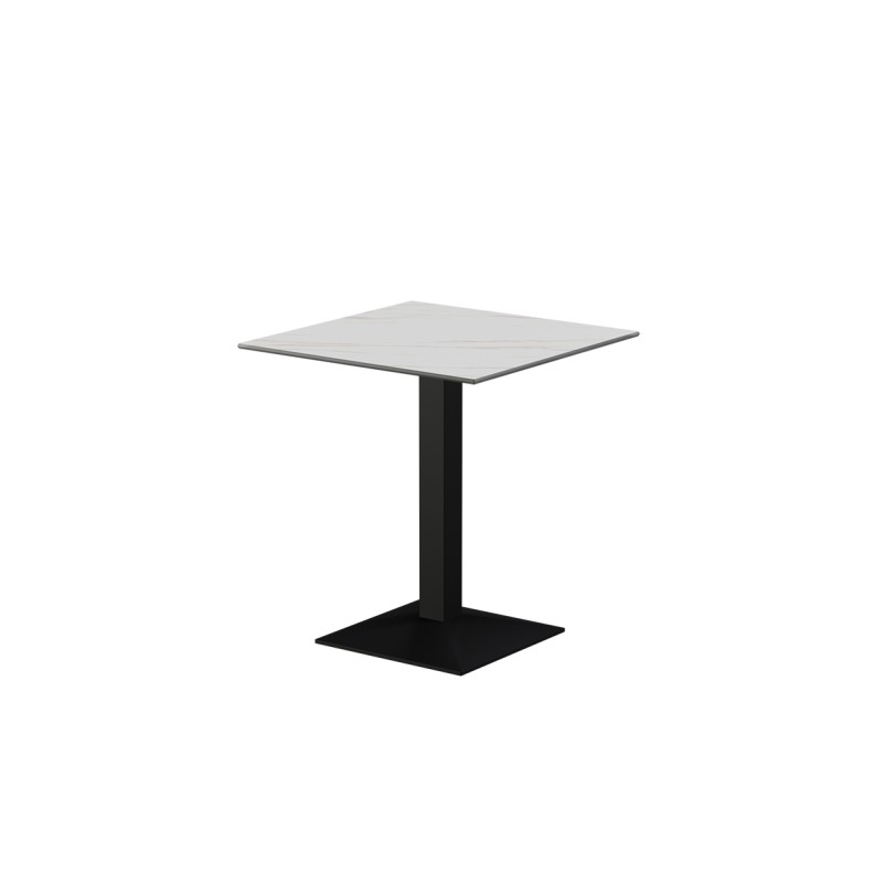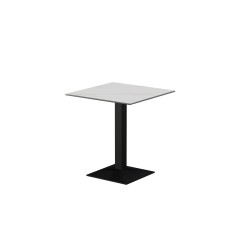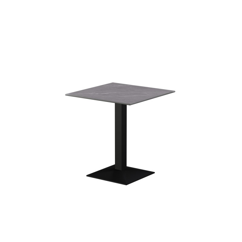 Čtvercová litinová podstava (43×43 cm) a profilovaná noha (8×8 cm) zajišťují vysokou stabilitu a dobrou rovnováhu v každé výšce. Minimalistický design umožňuje snadné začlenění do různých interiérů a odolnost materiálů dovoluje použití i venku.