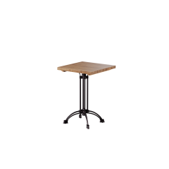 Dřevěný stolek RUSTICAL spojuje masivní zpracování s klasickým designem a je určen pro náročnější kavárenské prostory. Dubová deska o tloušťce 38 mm dodává interiéru eleganci a podtrhuje přirozený charakter prostoru. Dekorativní litinová podnož se vyznačuje ušlechtilým tvarem a vnáší do provozu příjemný rustikální akcent.
