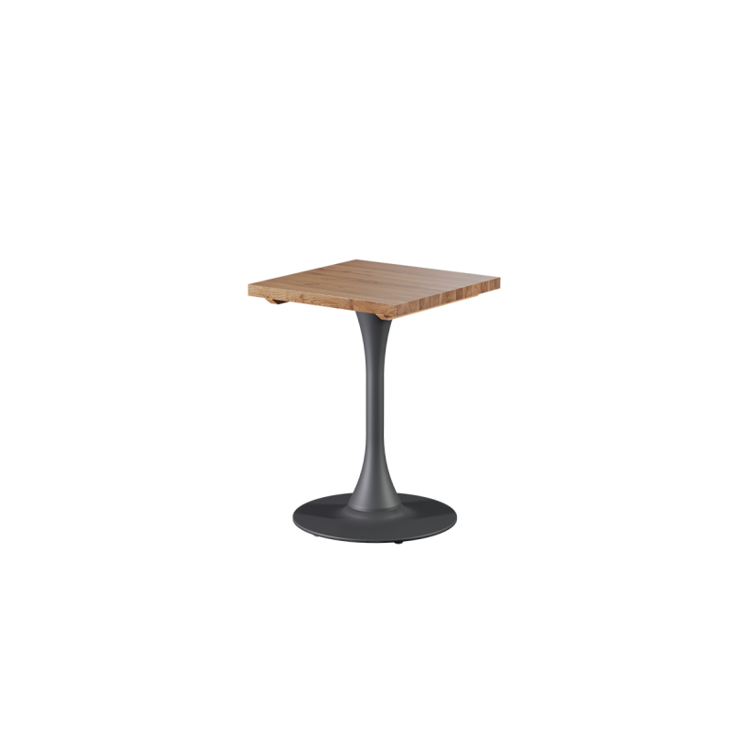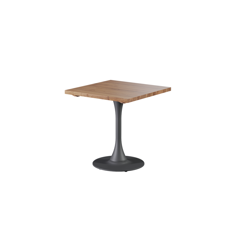 U dubové verze stolku ARIOSO je použita deska z přírodního evropského dubu o tloušťce 38 mm. Její tmavý, teplý odstín dodává stolku hloubku a vytváří výrazný akcent v každém interiéru. Dub patří mezi dřeviny s velmi vysokou tvrdostí, takže výborně odolává intenzivnímu používání v provozech s velkým počtem hostů.