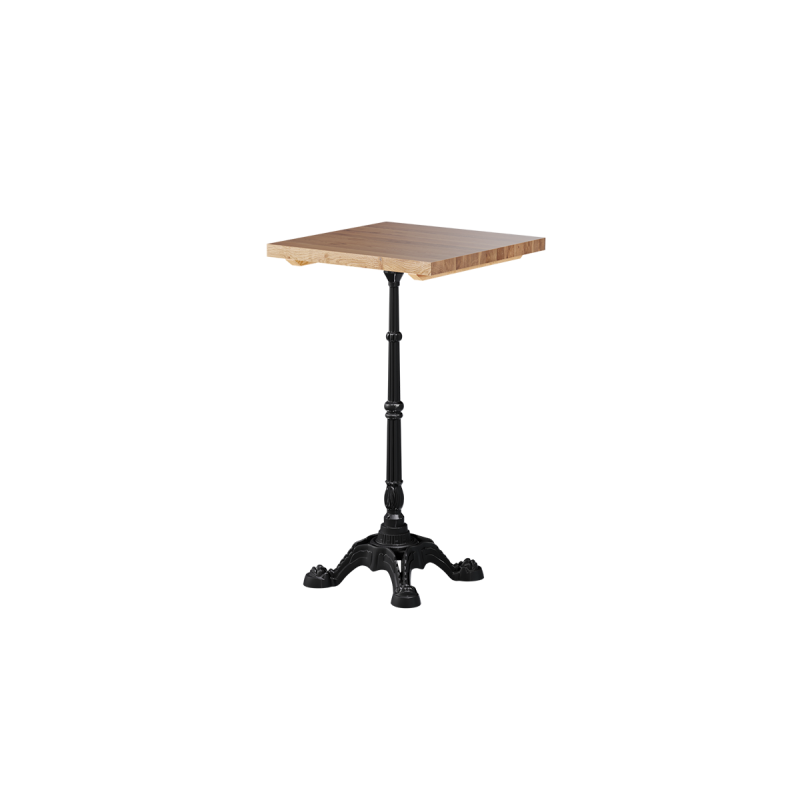 Dubový dřevěný stolek CASTELLO BAR se vyznačuje bohatě zdobenou litinovou podstavou, která je jeho charakteristickým znakem. Vyřezávané detaily vnášejí do interiéru eleganci a podtrhují jeho atmosféru. Jde o styl, který se osvědčí v podnicích, kde záleží na precizním detailu a ucelené, konzistentní stylistice.