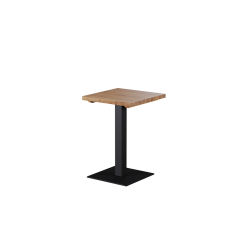 Ocelová podstava dubového stolku do kavárny ALFA S je opatřena odolným práškovým lakem, který zvyšuje odolnost proti poškrábání vznikajícím při každodenním posouvání a změnách uspořádání prostoru. Široká podstava zajišťuje stabilitu a dodatečné konstrukční výztuhy zabraňují kolébání stolku i při intenzivním provozu.