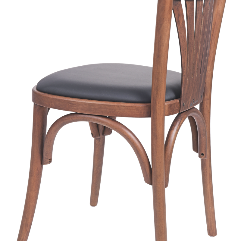 Model LEGEND je vyroben z masivního bukového dřeva, tvarovaného pomocí tradiční Thonetovy techniky parního ohýbání. Působením vysoké teploty získává dřevo pružnost, což umožňuje vytvářet plynulé a pevné oblouky bez ztráty stability. Zároveň si konstrukce zachovává nízkou hmotnost, která je důležitá v banketových sálech a dalších prostorech vyžadujících časté změny uspořádání.