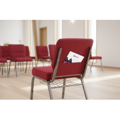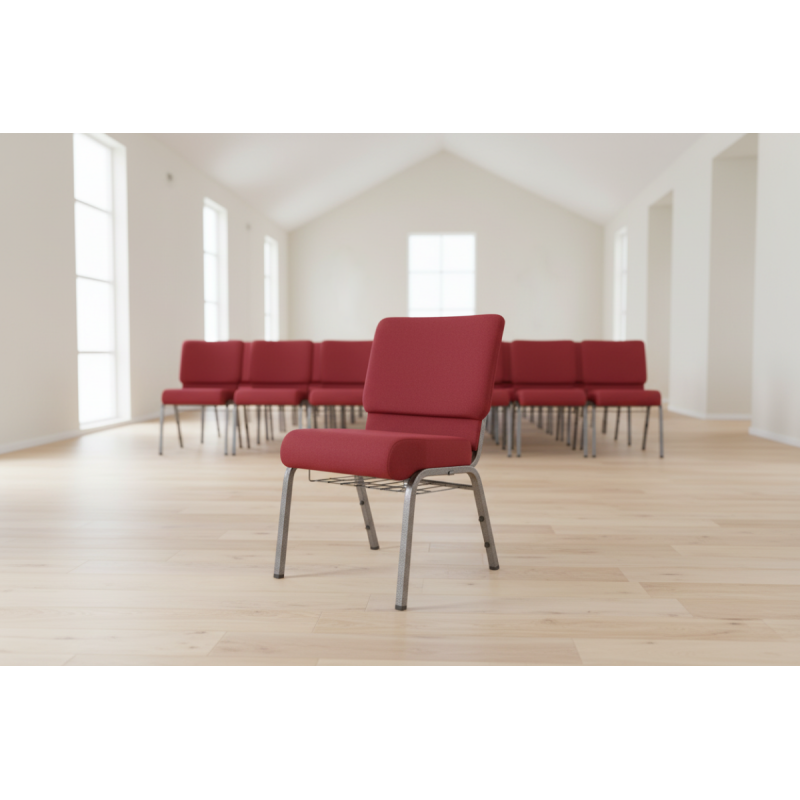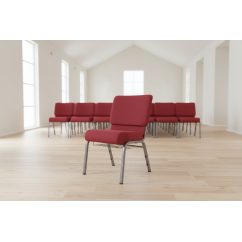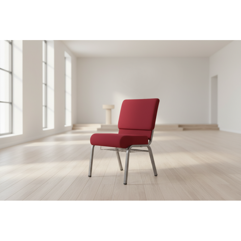 Stohovatelná kostelní židle AMBASSADOR byla navržena pro kostely, komunitní sály, kaple a další náboženské objekty. Tento model spojuje odolnost kovové konstrukce s estetikou, která je důstojná sakrálních prostor. Silná a pohodlná pěna o hustotě 30 kg/m³ spolu s certifikací nehořlavosti čalounění zajišťují potřebný komfort a bezpečnost během dlouhých bohoslužeb. Celek doplňují řešení, která maximalizují funkčnost nábytku, díky čemuž je ideální volbou jako židle do kostela a cirkví.