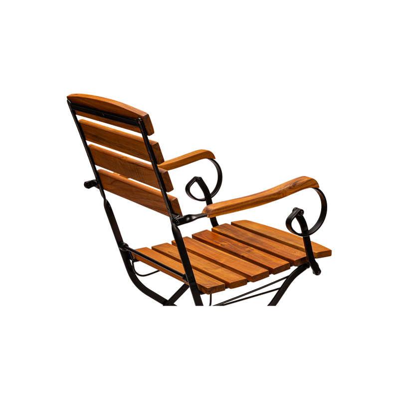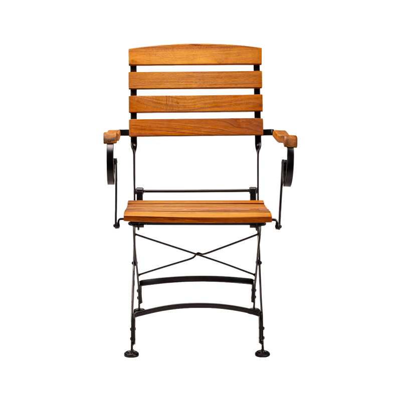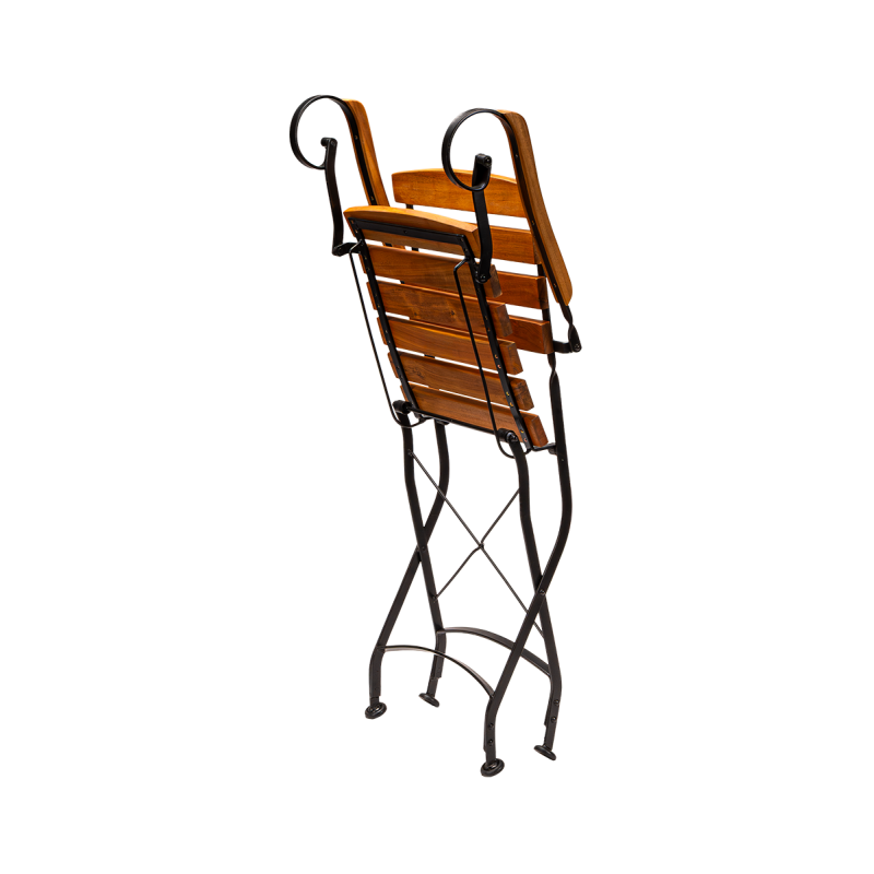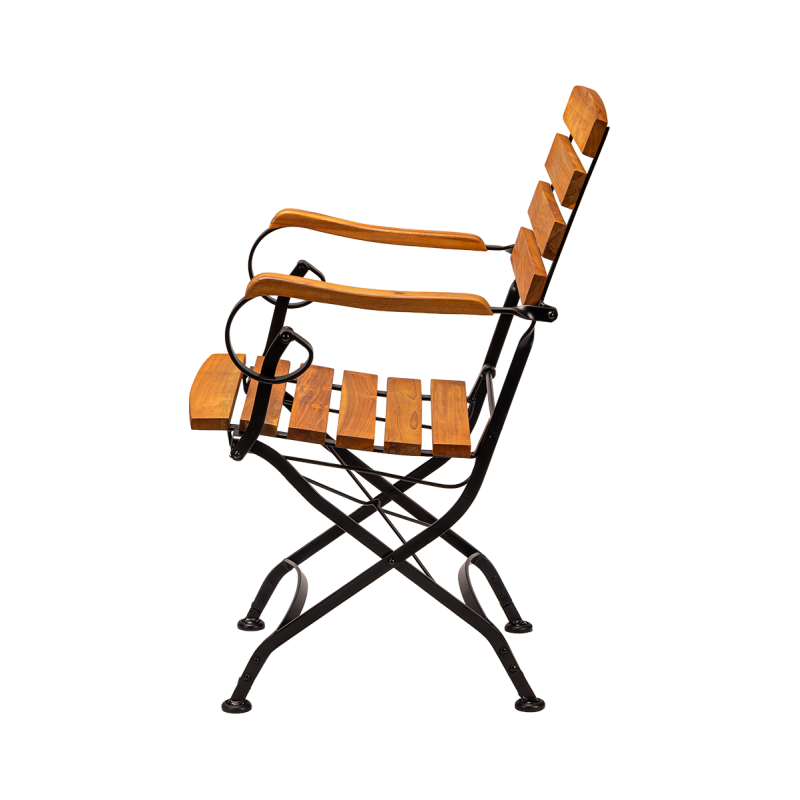 Rám je vyroben z oceli s práškovým lakováním v lesklé černé barvě. Profil o tloušťce 6 mm zajišťuje stabilitu a trvanlivost. Sedák a opěradlo tvoří lamely z akáciového dřeva o tloušťce 19 mm a šířce 55 mm – materiál, který vypadá skvěle a zároveň odolává intenzivnímu používání i povětrnostním vlivům. Židle je skládací, což usnadňuje skladování, přepravu a rychlou přípravu prostoru.