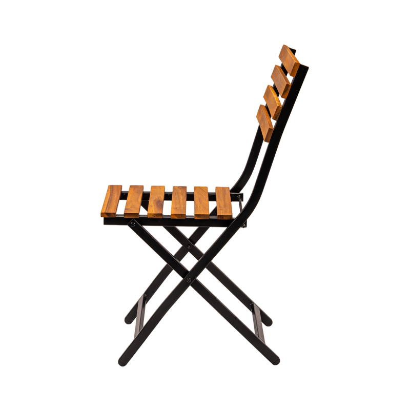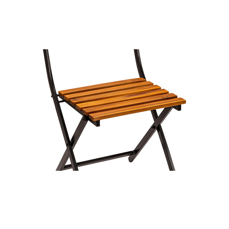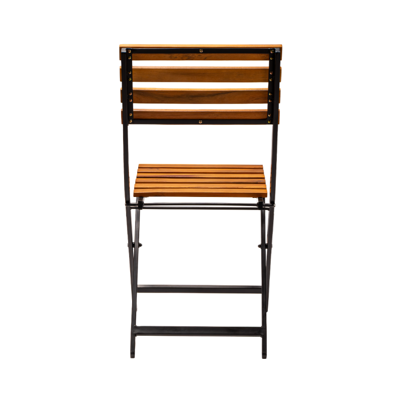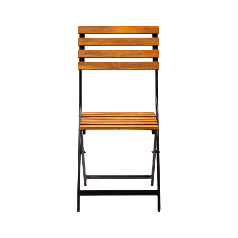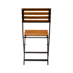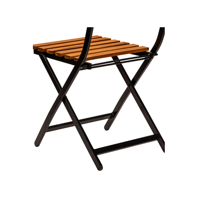 Ocelový rám s práškovým lakováním zaručuje stabilitu a odolnost vůči intenzivnímu používání i povětrnostním vlivům. Sedák a opěradlo z dřevěných lamel dodávají židli přirozený charakter a zajišťují pohodlí při sezení. Skládací funkce usnadňuje skladování, transport a rychlou přípravu prostoru pro hosty.
