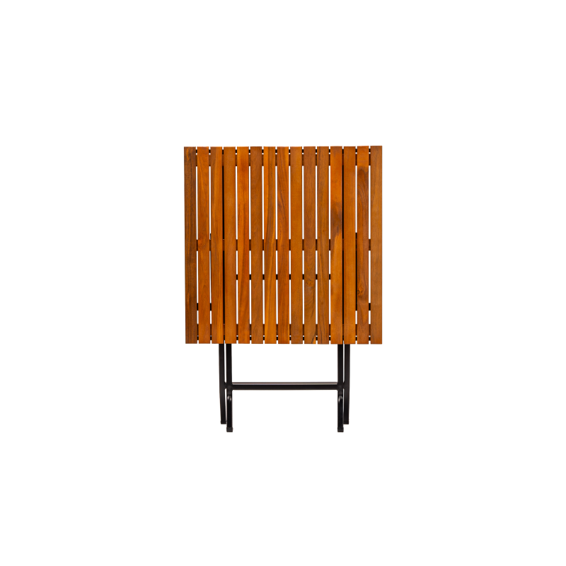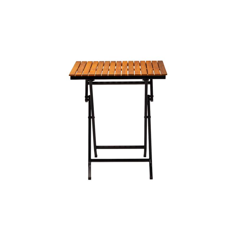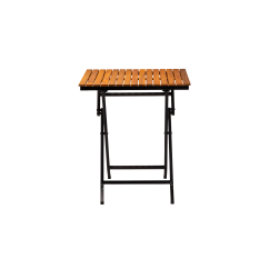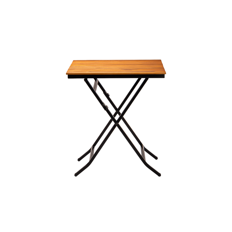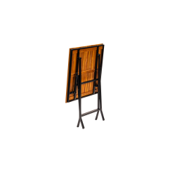 Stabilní ocelová konstrukce s práškovým lakováním zajišťuje odolnost vůči intenzivnímu používání, zatímco dřevěná deska dodává přirozený a nadčasový vzhled. Skládací funkce usnadňuje skladování a rychlou přípravu prostoru, což je zvláště důležité v sezónních provozech a tam, kde je vyžadována flexibilita.