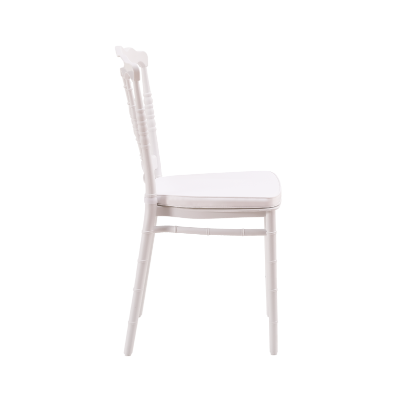 Polštář na svatební židle Simple je určen pro naše svatební židle Chiavari Tiffany Simple a Napoleon Simple. Jedná se o klasický bílý model, který se skvěle hodí do sálů s různorodým stylem interiéru.
