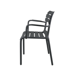 VELO je venkovní židle s lehkou, otevřenou formou a jemně tvarovanými liniemi. Horizontální lamely opěradla a mírně zaoblené područky dodávají celku uvolněný, letní charakter. Tento model se skvěle hodí do gastronomických zahrádek, k restauračním stolům i do bistro prostor.