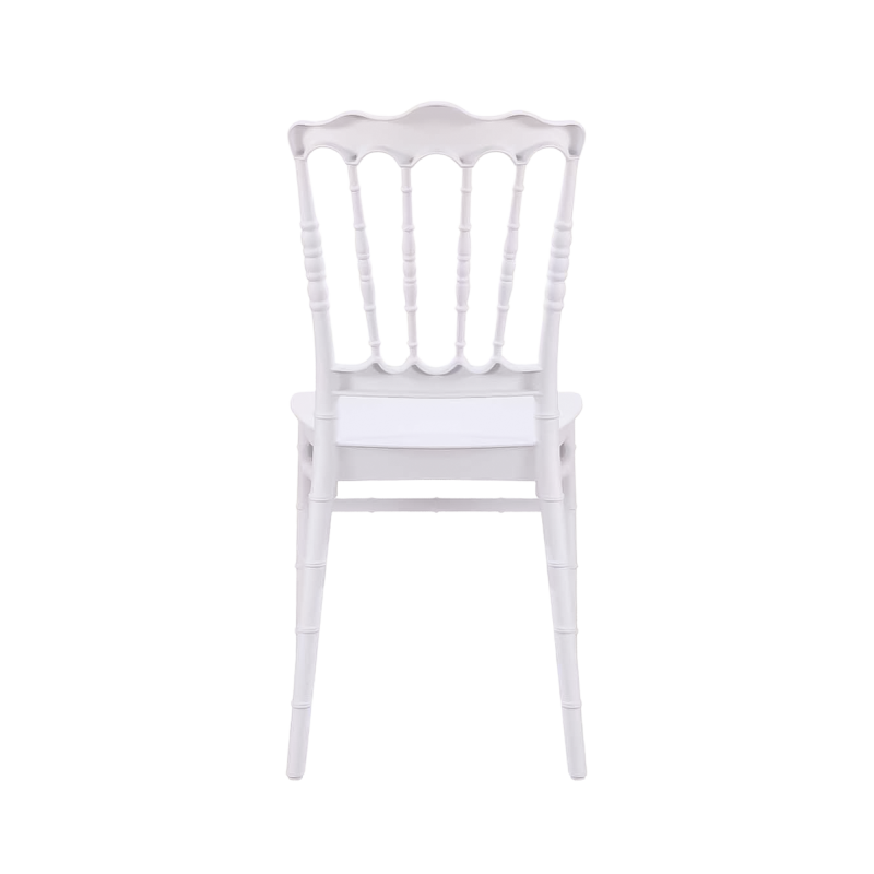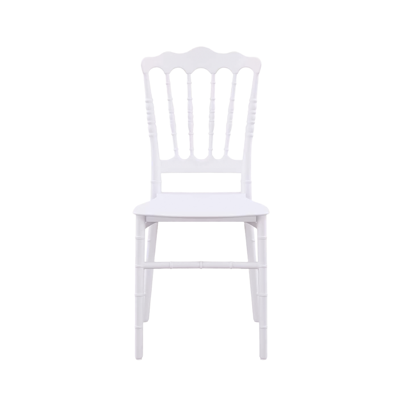 Svatební židle Chiavari Napoleon Simple jsou ideální volbou pro objekty z oblasti HoReCa – díky výrobě z litého polypropylenu jsou přizpůsobeny k intenzivnímu používání. Další velkou výhodou je možnost jejich stohování až do 12 kusů.