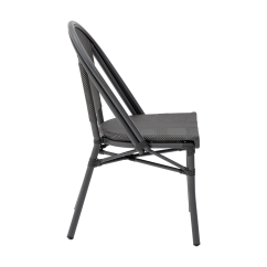 MATTEO je technorattanová židle s elegantní kavárenskou linií, která vytváří příjemnou atmosféru bez zbytečně výrazné formy. Zaoblené opěradlo a jemně zahnuté područky jí dodávají lehkost, zatímco výplet v grafitově černém tónu podporuje profesionální vzhled prostoru. Tento model se skvěle hodí do gastronomických zahrádek, na patio i do venkovních zón u restaurací. Osvědčí se všude tam, kde hosté očekávají pohodlí a estetiku dotaženou do detailu.